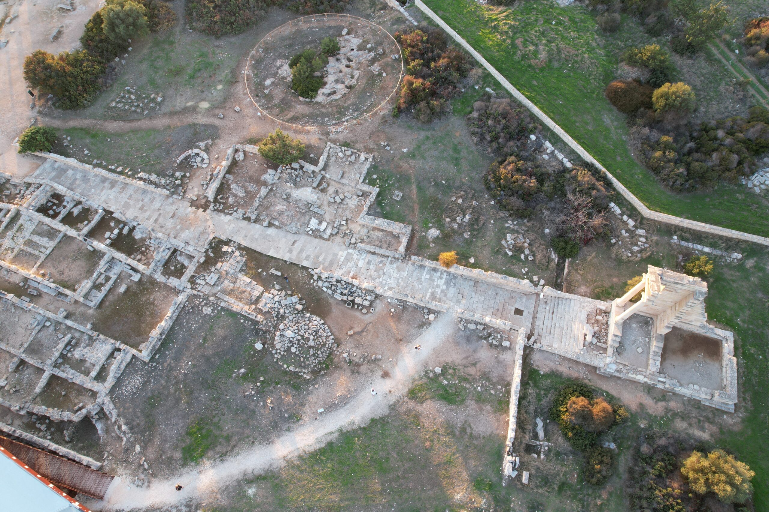 Apollon Hylates, a sanctuary, was an important religious centre. Originally, the site consisted of a temple, a circular monument, and a formalized Archaic Altar and Precinct. During the Roman period the site was extended with the addition of the south and north buildings, which may have been used for the display of votives or the accommodation of visitors. Most of the monuments belong to the site’s 1st century AD restorations and consist of Apollo’s temple (which has been partly restored), pilgrim halls, the ‘palaistra’ (where athletes exercised and played games), a bath complex, and a holy precinct.